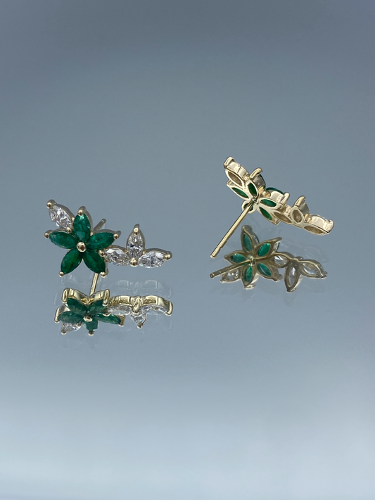Green Emerald Stud Earrings in 14K Yellow Gold