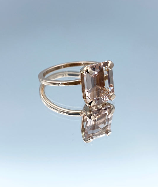 Solitaire Emerald-Cut Morganite in 14K Rose Gold