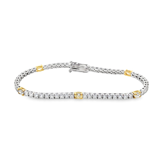 Yellow and White Diamond Princess Cut Tennis Bracelet in 18K Gold and Platinum Two Tone