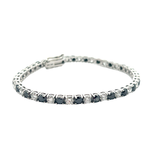 Black and White Diamond Tennis Bracelet in 14K White Gold