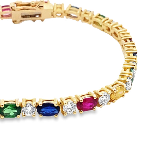 Multicolor Alternating Diamond and Sapphire Tennis Bracelet in 14K Yellow Gold