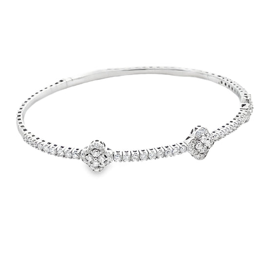 Three Leaf Diamond Flexible Bangle Bracelet in 14K White Gold