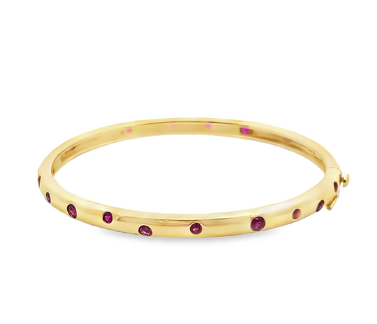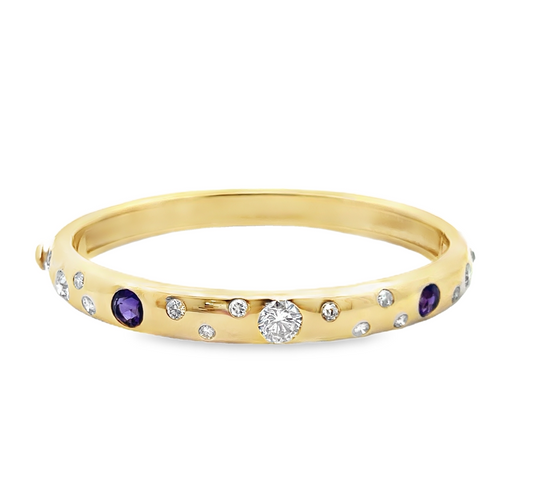 Amethyst and Diamond 14K Gold Bangle Bracelet