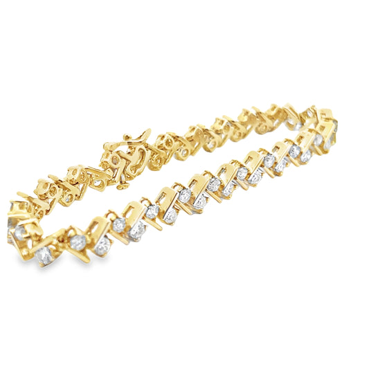 Vintage-Style Feather Diamond Tennis Bracelet Cross Design in 14K Yellow Gold