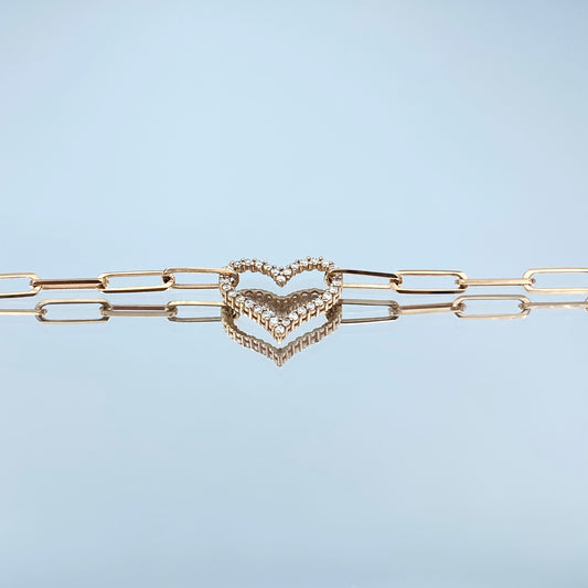 Heart Charm Paperclip Link Bracelet in 14K Gold