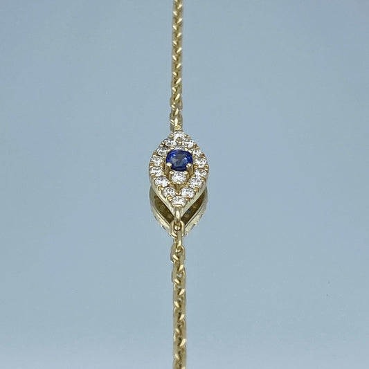 Diamond and Sapphire Evil Eye Bracelet in 14K Yellow Gold