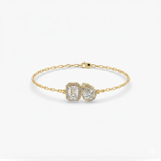 Toi Et Moi Gemstone and Diamond Halo Bracelet Chain