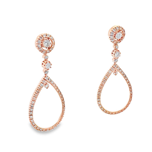Teardrop Round Brilliant-Cut Diamond Dangle Earrings in 14K Rose Gold