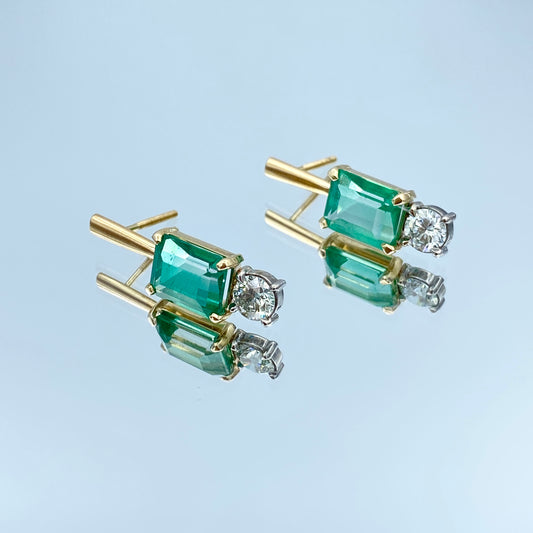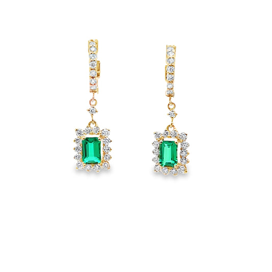 Emerald and Diamond Drop Earrings in 14K Yellow Gold