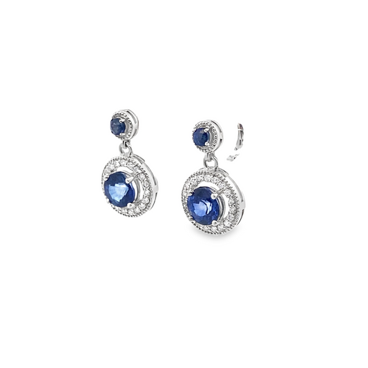 Halo Sapphire and Diamond Drop Earrings in 14K White Gold
