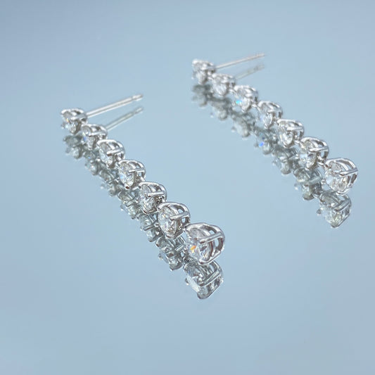 Purple and White Diamond Dangly Linear Drop Earrings in 14K White Gold