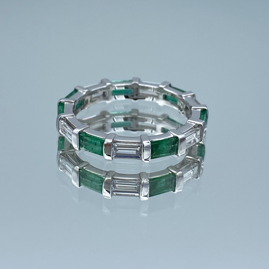 Alternating Baguette-Cut Emerald and Baguette-Cut Diamond Eternity Band in 14K White Gold