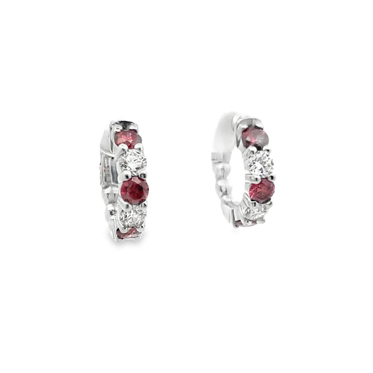Round Brilliant-Cut Purple and White Diamond Hoop Earrings in 14K White Gold