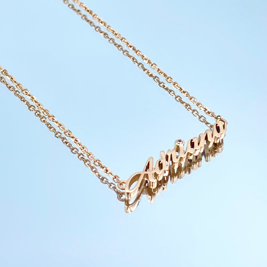 Script Name Necklace with a Diamond in 14K Rose Gold