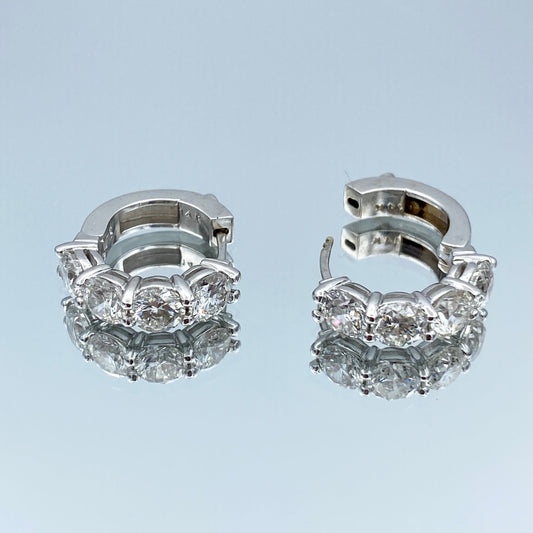 Round Brilliant-Cut Diamond Huggie Hoop Earrings in 14K White Gold