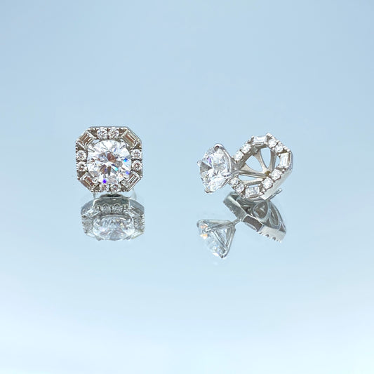 Round and Baguette-Cut Diamond Jacket Earrings in 14K White Gold