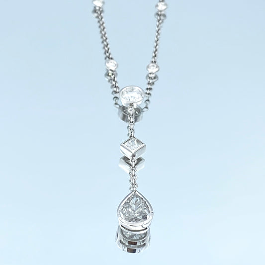 Pear Shape and Round-Cut Diamond Lariat Necklace in 14K White Gold