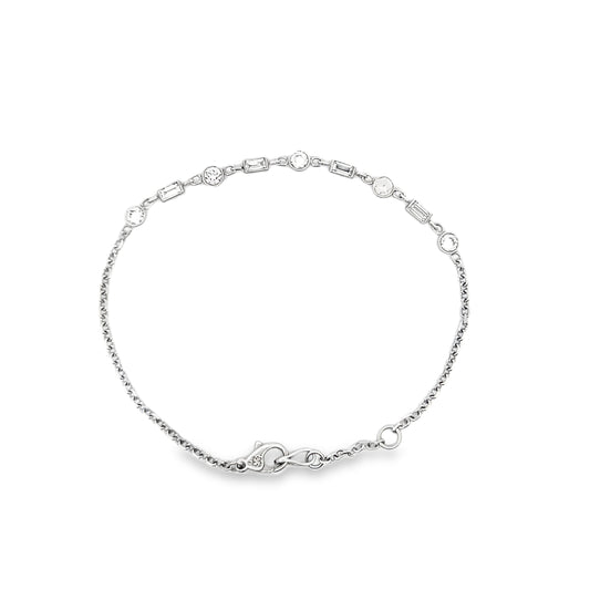 Round and Baguette Cut Diamond Bracelet in 14K White Gold