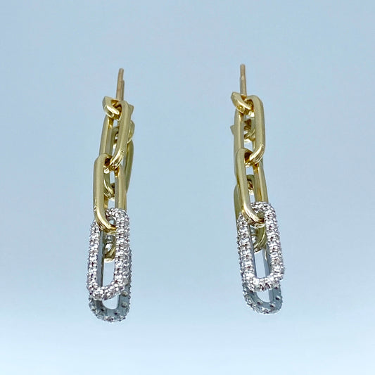 Paperclip Link Earrings with Pave Set Diamonds in 14K Yellow Gold