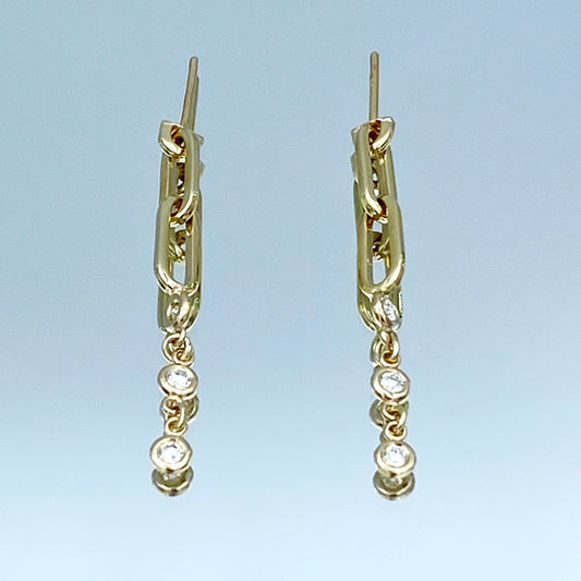 Paperclip Link Earrings with Bezel-Set Diamond in 14K Yellow Gold