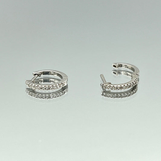 Pave Diamond Huggie Earrings in 14K White Gold