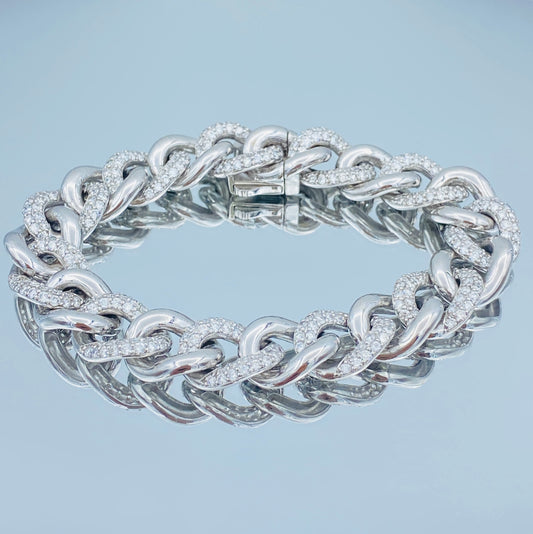 Pave Set Diamond Unisex Cuban Link Bracelet in 14K White Gold