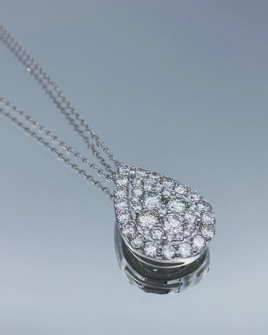 Pear-Shape Cluster Diamond Necklace in 14K White Gold