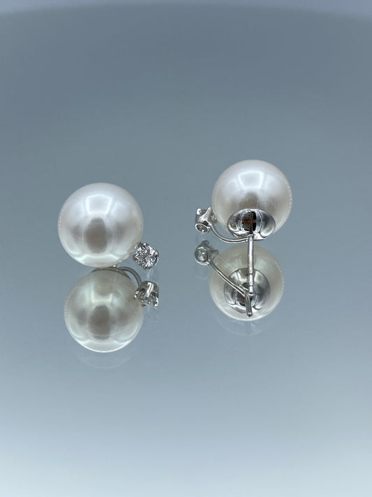 Pearl Earrings with Round-Cut Diamonds in 14K White Gold