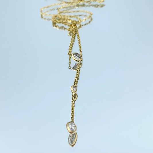 Marquise-Cut and Round-Cut Diamond Lariat Necklace in 14K Yellow Gold