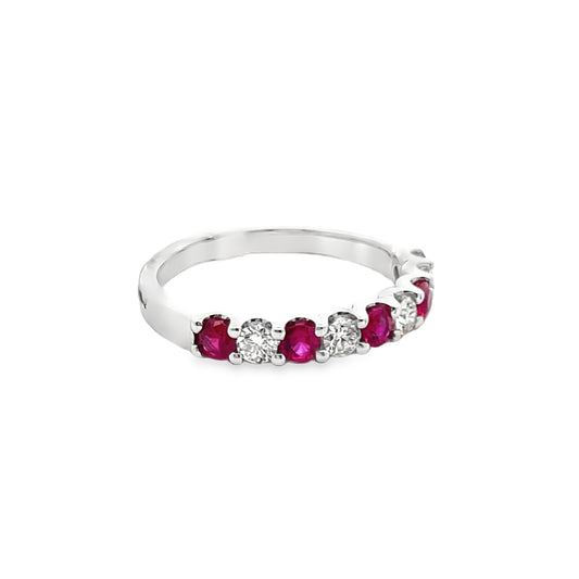 Ruby and Diamond Halfway Band in 14K White Gold