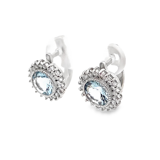 Halo Round Brilliant Aquamarine and Diamond Earrings in 14K White Gold
