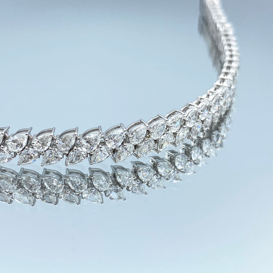 Double Row Pear Shape Diamond Bracelet in 14K White Gold
