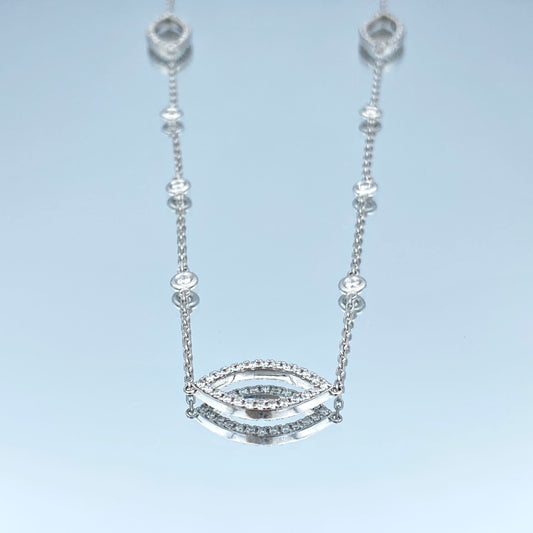 Diamonds by the Yard Necklace with Pave Stations in 14K White Gold