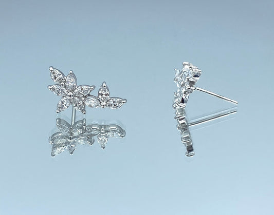 Dangly Flower Earrings in 14K Yellow Gold and Diamonds