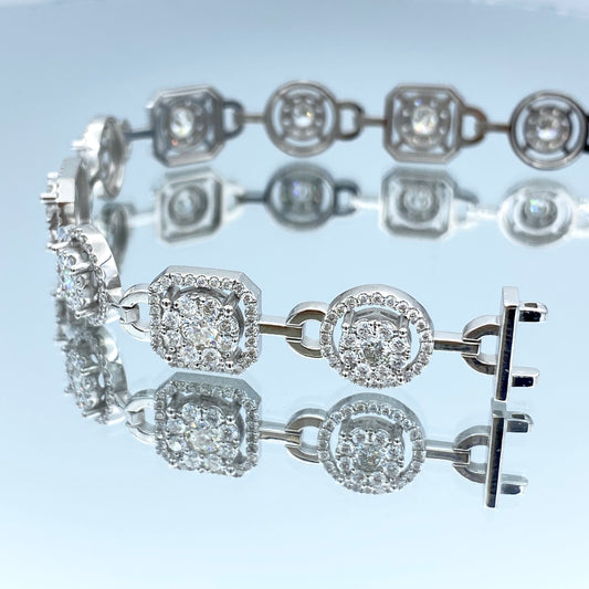 Alternating Pink Purple and White Diamonds in 14K Two Tone Rose Gold and White Gold Tennis Bracelet