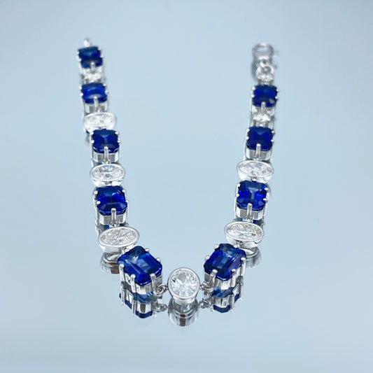 Alternating Blue Sapphire and Diamond Tennis Bracelet in 14K White Gold