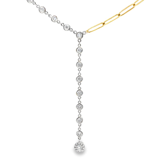 Bezel-Set Round Brilliant-Cut Diamond Necklace in 14K White and Yellow Gold