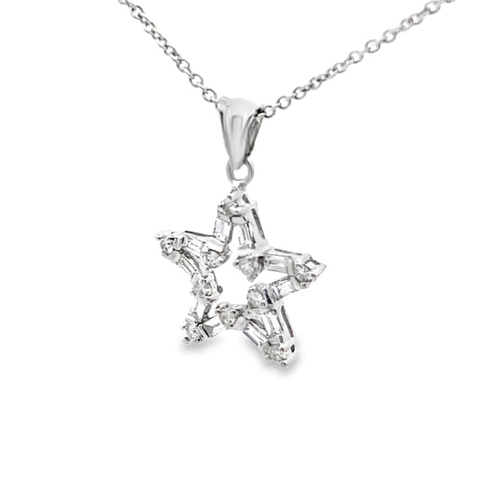 Baguette-Cut and Round-Cut Diamond Star Shape Pendant Necklace in 14K White Gold