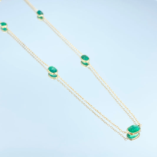 Bezel-Set Emerald Stationary Necklace in 14K Yellow Gold