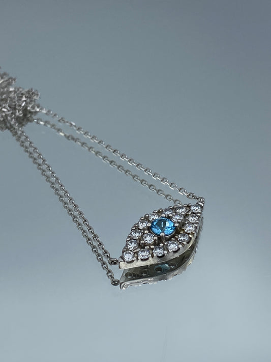 Blue Topaz and Diamond Evil Eye Pendant Necklace in 14K White Gold