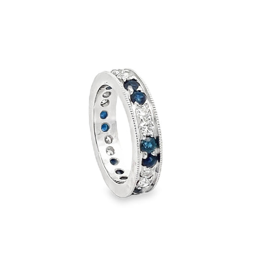 Channel-Set Sapphire and Diamond Eternity Band in 14K White Gold