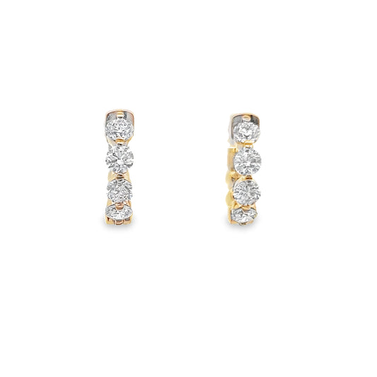 LKS Floating Diamond Huggie Hoop Earrings in 14K Yellow Gold