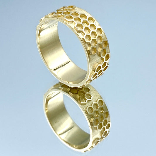 Men’s Honeycomb Wedding Band in 14K Yellow Gold