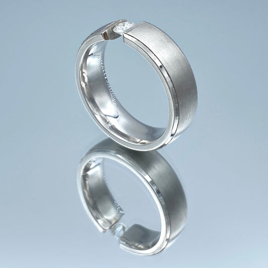 Men's Wedding Ring with Round-Cut Diamond in 14K White Gold
