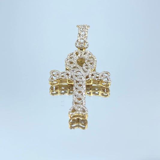 Ankh Symbol Pave Diamond Pendant Necklace in 14K Yellow Gold