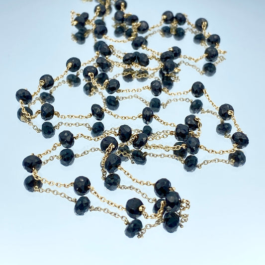 Black Diamond Bead Necklace in 14K Yellow Gold