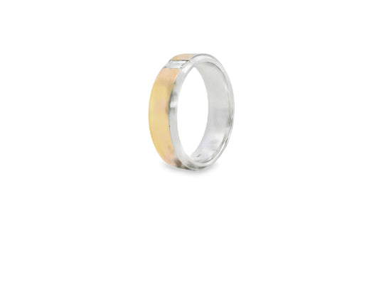 Two Tone Men's Wedding Ring with baguette-Cut Diamond in 14K Rose and White Gold