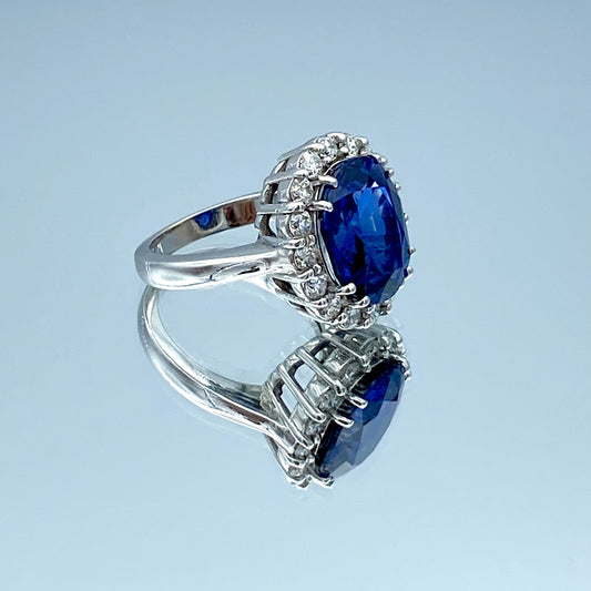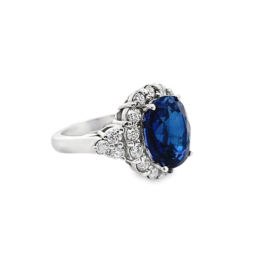 Oval-Cut Blue Sapphire Ring with Diamond Halo in 14K White Gold