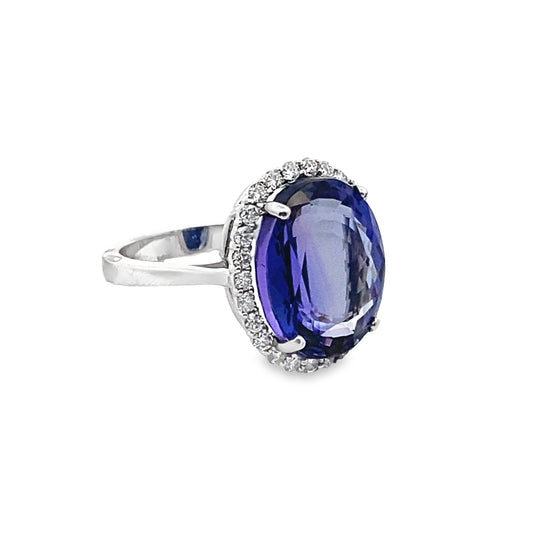 Oval-Cut Tanzanite Ring with Diamond Halo in 14K White Gold
