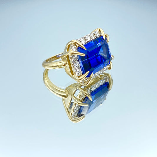 Blue Sapphire Halo Ring in 14K Yellow Gold